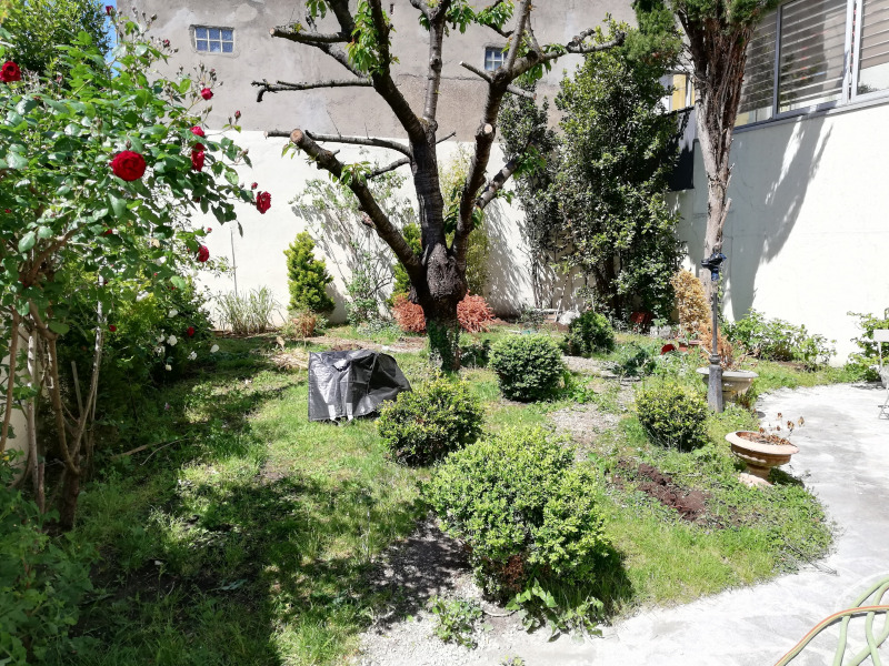 Arrachage de vieux arbustes dans une cours d'immeuble.