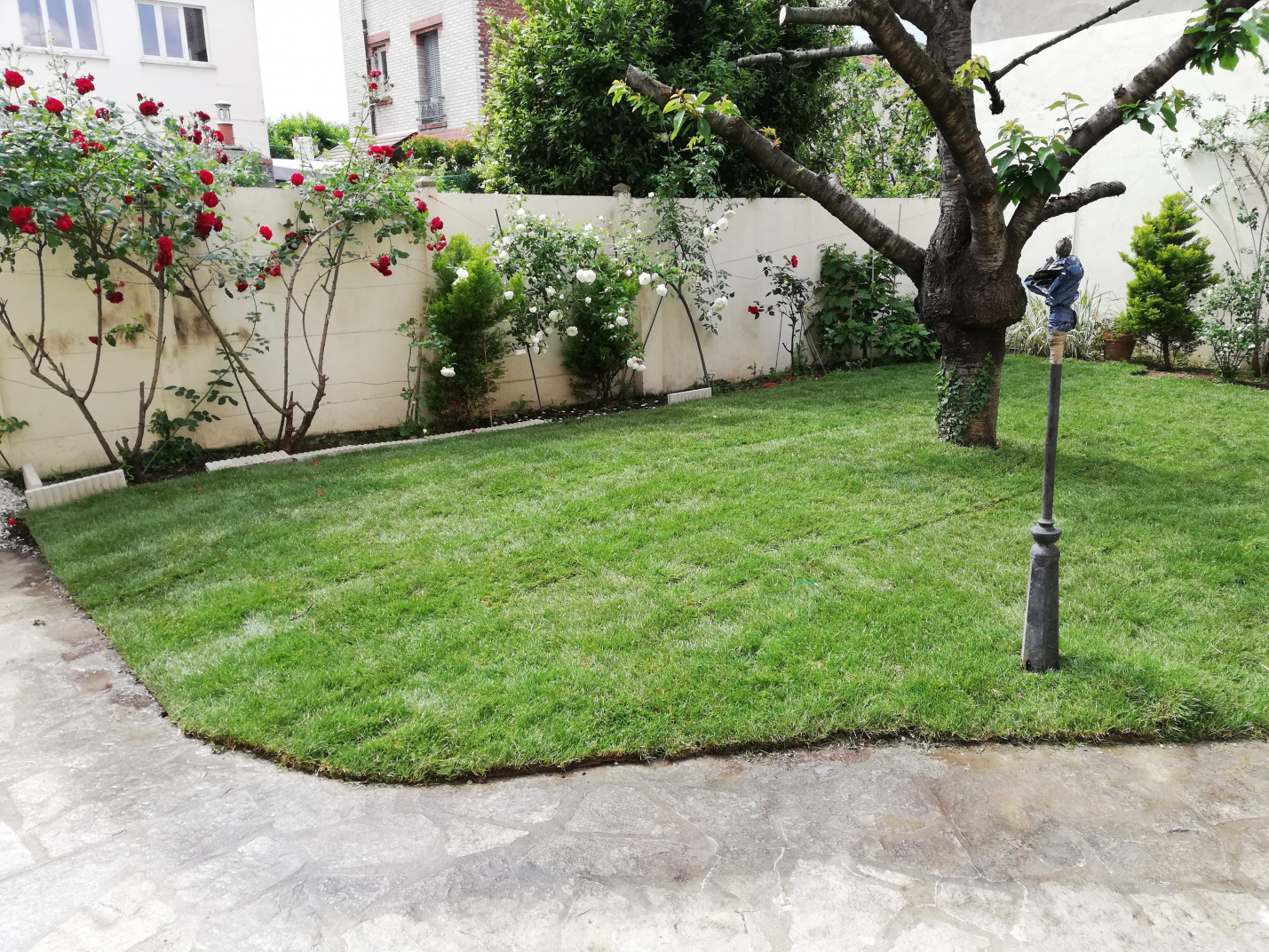 Fourniture et pose de rouleaux de gazon naturel.